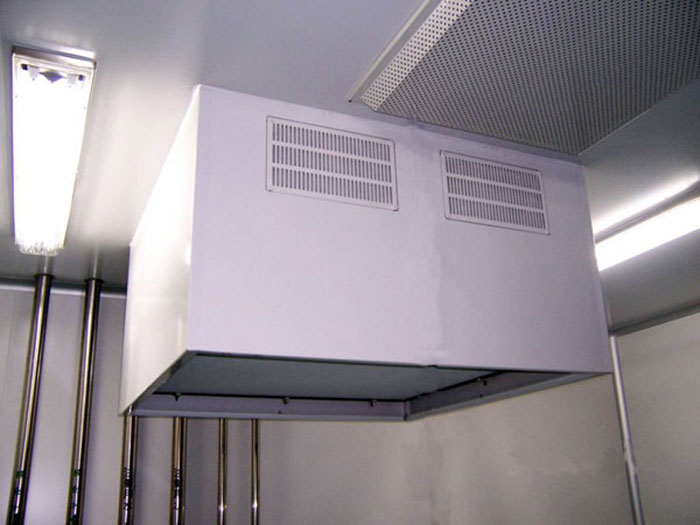 高效過濾器進(jìn)行二次過濾,以起到充分保護(hù)高效過濾器的作用。在離心風(fēng)機(jī)提供的壓力下,通過高效過濾器,使之達(dá)到潔凈要求。所有氣流均經(jīng)過