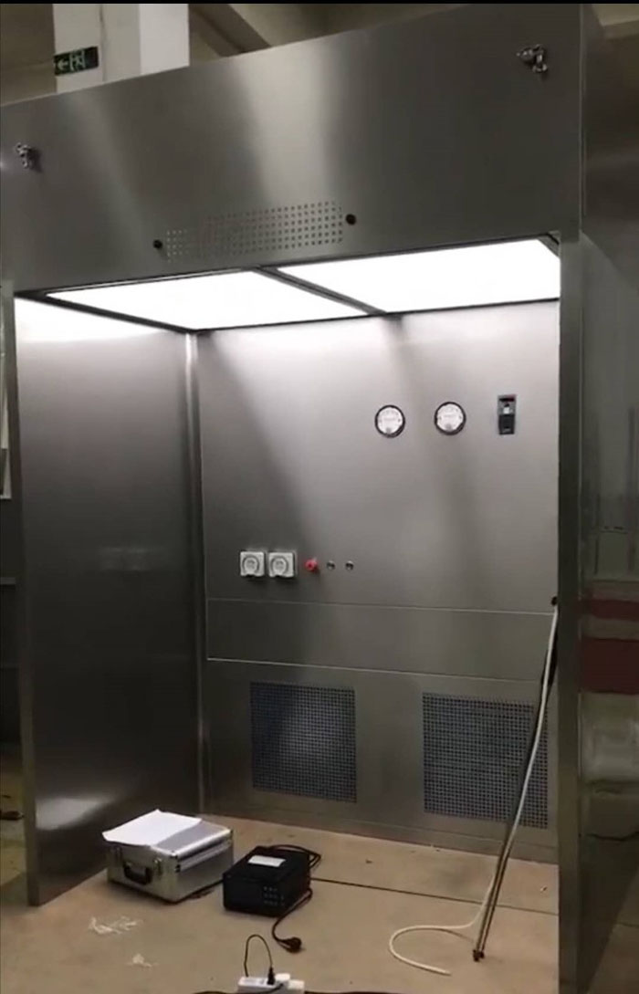 稱量室內空氣經初效過濾器中效過濾器,由離心風機壓入靜壓箱,在經高效過濾器后從氣流擴散送風單元出風面吹出,潔凈空氣以均勻的斷面風速流經工作區,從而形成高潔凈的工作環境。中心稱量罩的操作區域維持在負壓狀態,排出10%的循環空氣。中心稱量小室的空氣經過三級過濾系統(高效過濾器除去99.99%的顆粒≥0.3μm以上的所有灰塵)進行自循環,設計符合藥廠GMP要求。