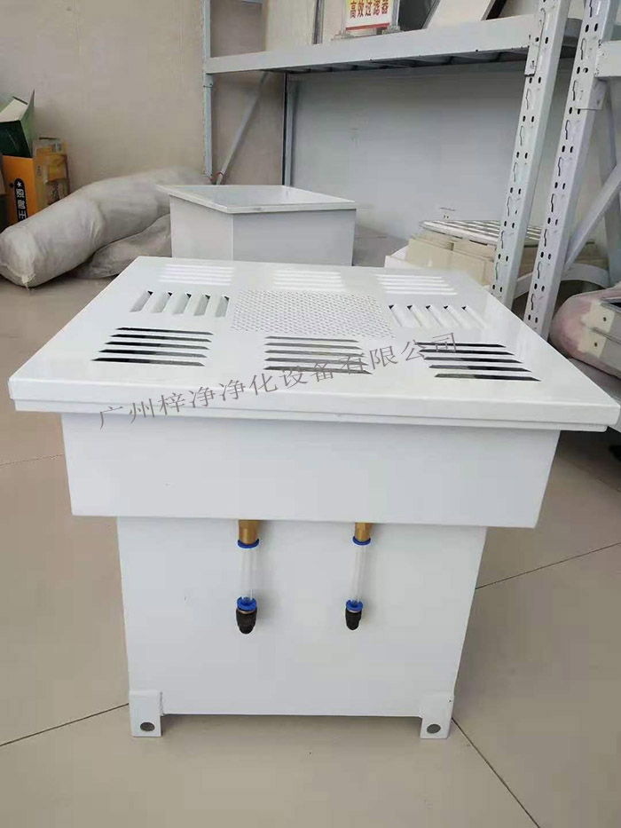 1、靜壓箱采用低碳鋼材料制作,高效過濾器和靜壓箱做成一個整體。在靜壓箱的進風口處配置--調節閥調節送風均勻度和靜壓效果。
